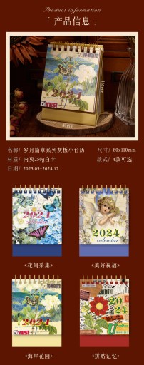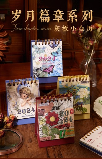 Мини-календарь серии Time Chapter на 2024 год, винтажные настольные календари с масляной живописью