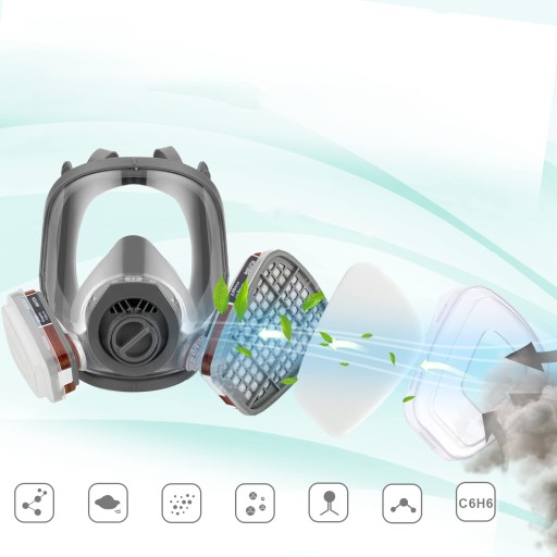 Maska pełnotwarzowa z filtrem wykonana z wysokiej jakości materiałów.