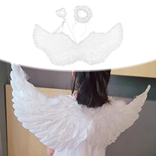 Zestaw Skrzyd?o Anio?a i Halo Kostium Anio?a do odgrywania ról na Halloween dla fotografów 40 cm x 80 cm