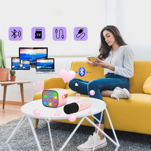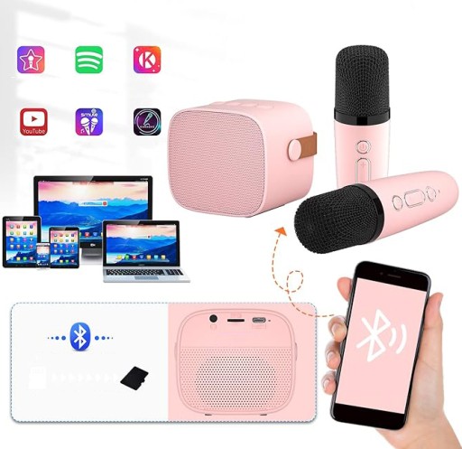 Podnieś ten uroczy sprzęt do karaoke i mikrofon bezprzewodowy i ciesz się przeprowadzkową imprezą! Mini KTV do odtwarzania muzyki i śpiewania w dowolnym momencie. Ten mikrofon zapewni Twojej rodzinie lub przyjaciołom wspaniałe wrażenia ze śpiewania na imprezach w pomieszczeniach lub na świeżym powietrzu!