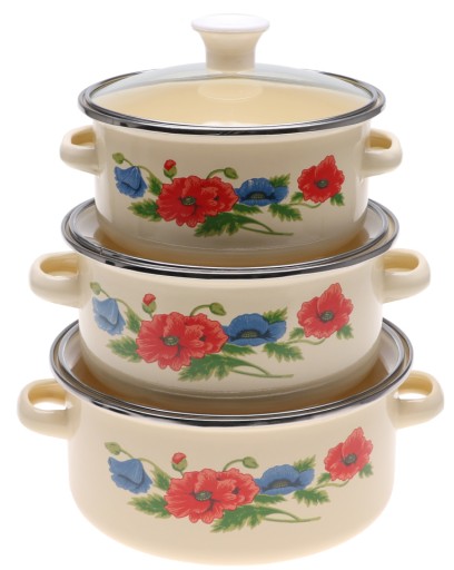 НАБОР ЭМАЛЬНЫХ ГОРШКОВ, 6 шт. Набор эмалированных горшков бежевого цвета 2229