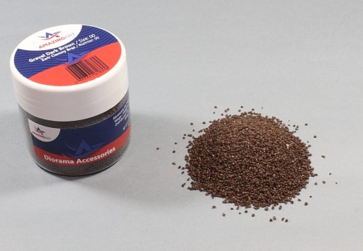Drobny żwir w różnych kolorach o rozmiarze 00Stosowany w budowie makiet, dioram, podstawek do figurek w różnych skalachWaga 200g +/- 5%