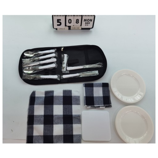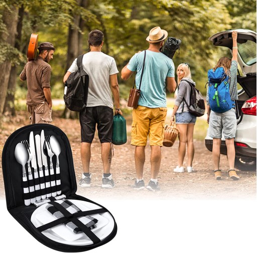 🥄 Doskonały zestaw sztućców: połączenie 2 łyżek, 2 widelców, 3 noży ząbkowanych, 2 talerzy, 2 serwetek, 1 deski do krojenia, 1 otwieracza do butelek, każde akcesorium ma własną komorę, a sztućce pozostają stabilne bez grzechotania podczas transportu.
