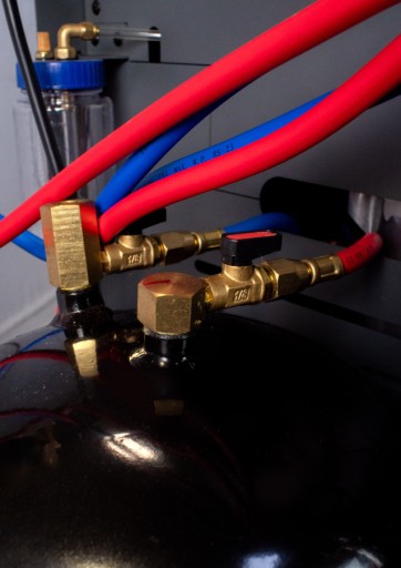 - Czytelne manometry wskazujące ciśnienie HP i LP oraz ciśnienie w zbiornikach