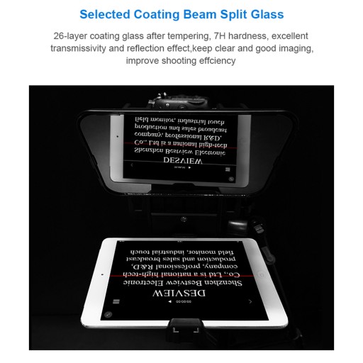 【Smartfon / tablet / DSLR Teleprompter】 Obsługuje fotografowanie za pomocą smartfona / aparatu DSLR i podpowiadanie za pomocą smartfona / tabletu (poniżej 7,9 cala), teleprompter jest idealny do nagrywania wideo, transmisji na żywo, wywiadów, przemówień itp.