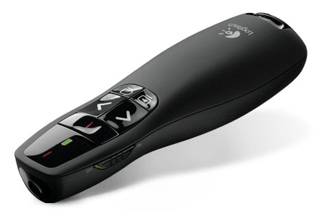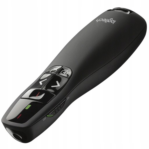 Logitech R400 to funkcjonalne urządzenie wskazujące o intuicyjnym rozmieszczeniu przycisków wyposażone w czerwony wskaźnik lasera ułatwiający prowadzenie prezentacji nawet w bardzo ciemnych pomieszczeniach.