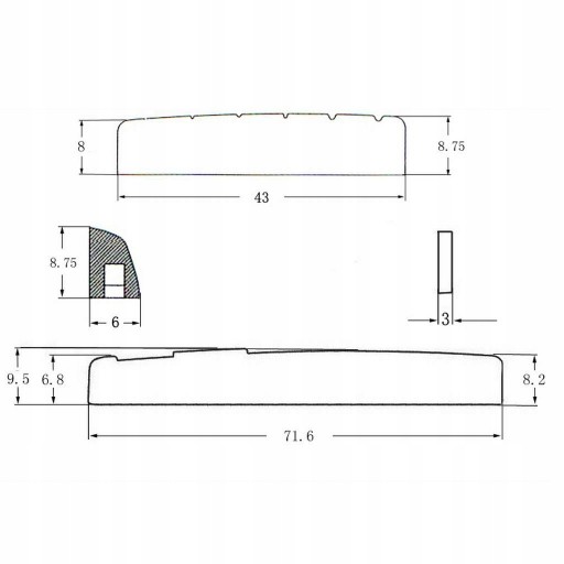 Nakrętka mostkowa: ok. 43x8,75mm/1,69x0,34 cala. (dł. x wys.)