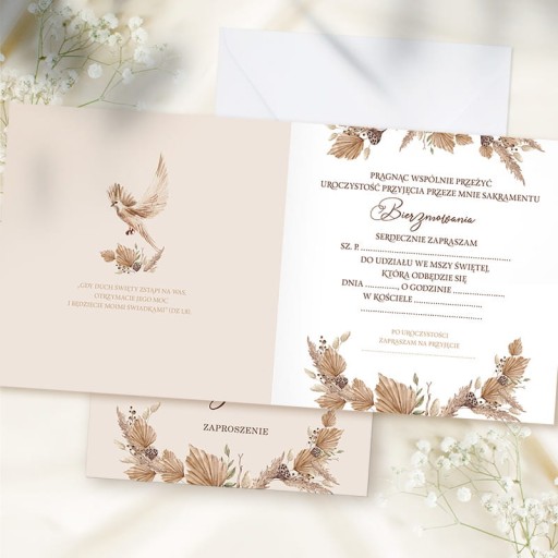 - Piękne zaproszenia na Bierzmowanie z modną grafiką. Wykonane z wysokiej jakości papieru.