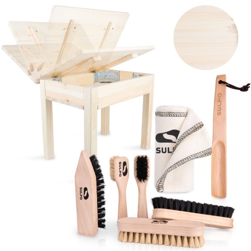 Wyjątkowy zestaw SULPO do butów jest nie tylko estetyczny, ale także funkcjonalny. Może pełnić rolę siedziska, podnóżka, stoliczka czy nawet dekoracyjnego elementu TWOJEGO wnętrza. Z zestawem szczotek z włosiem końskim SULPO, Twoje buty zawsze będą wyglądać jak nowe. Ciesz się nieskazitelnym wyglądem swoich butów przez wiele lat. Jakość i elegancja w jednym zestawie.