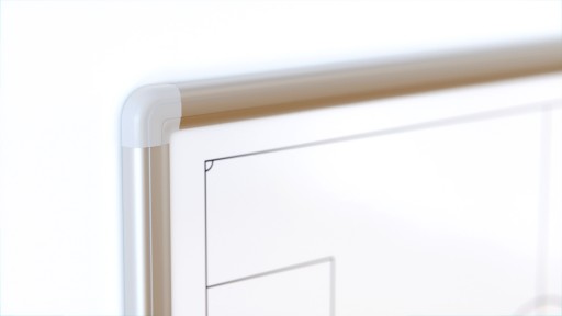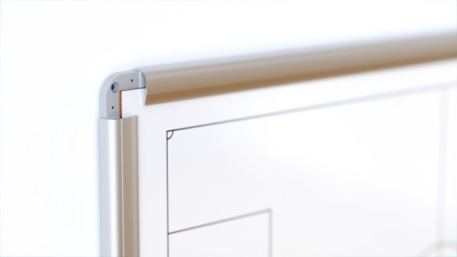 Tablica ALLboards otoczona jest elegancką, szarą, aluminiową ramą PREMIUM EXPO. Rama została zabezpieczona przed korozją w procesie anodowania. Anodowanie to proces, w czasie którego na powierzchni metalu wytwarza się warstwa tlenku glinu. Dzięki niemu powierzchnia ramy zostaje nie tylko zabezpieczona przed korozją ale także staje się gładka i lśniąca. Mimo wielkiej wytrzymałości, szerokość ramy to zaledwie 2 cm.
