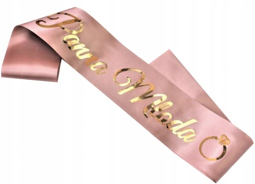 Pięknym i modnym gadżetem są satynowe szarfy. Szarfa ze złotym napisem Panna Młoda w kolorze brudnego różu będzie fantastycznym dodatkiem dla najważniejszej uczestniczki wieczoru.