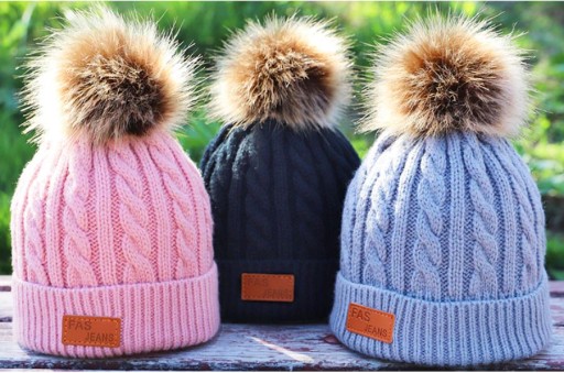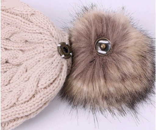 Pompon przy czapce mocowany jest na zatrzask. W każdej chwili można odpiąć pompon zyskując inny fason czapki.