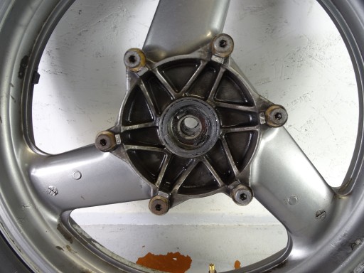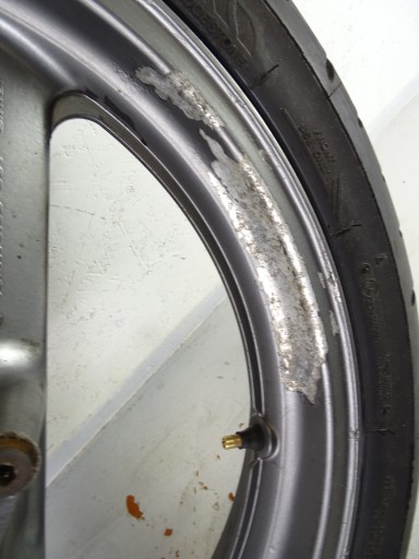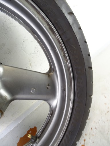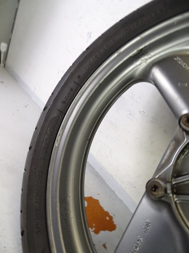 Koło sprawne, proste, z bezwypadkowego motocykla, odpryski lakieru na powierzchni, sprzedaję dokładnie to, co widać na zdjęciach.