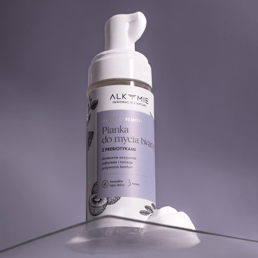SKUTECZNA I ŁAGODNA PIANKA DO TWARZY na bazie roślinnych substancji myjących z kokosa, która usuwa pozostałości makijażu, codzienne zanieczyszczenia i nadmiar sebum, nie naruszając bariery hydrolipidowej skóry i pielęgnując ją.