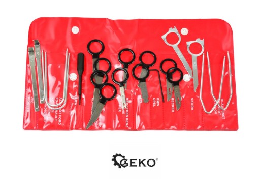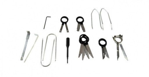 20-elementowy uniwersalny zestaw do demontażu radia i nawigacji. Zestaw umożliwia demontaż praktycznie każdego radia samochodowego. Niezastąpiony w serwisach zajmujących się nagłośnieniem CAR-audio.