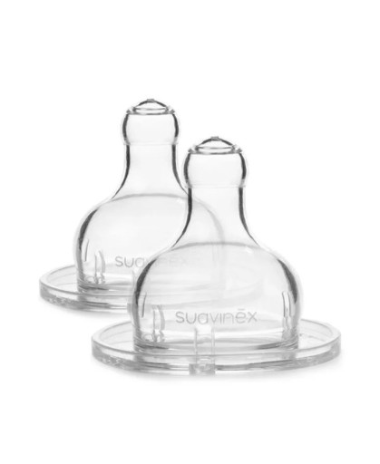 Соски Suavinex для бутылочек круглой формы + поток 4м 2 шт для плотных.