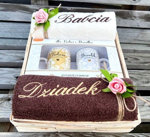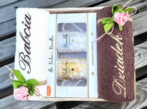 Wyjątkowy prezent na Dzień Babci i Dziadka - zestaw dużych ręczników i kubków. Elegancki, a jednocześnie praktyczny zestaw, który ucieszy babcię i dziadka.