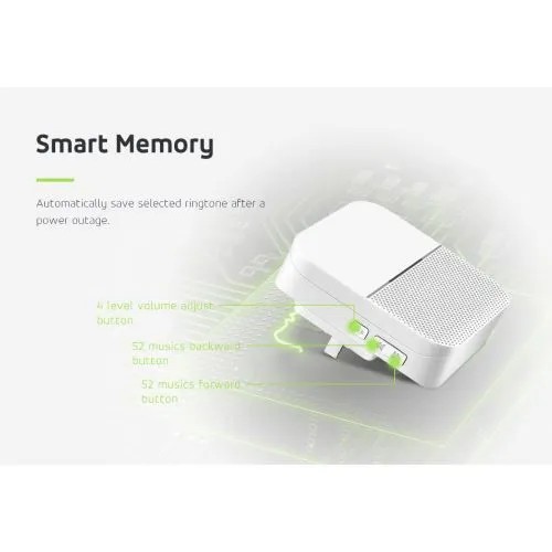 Odbiornik posiada 52 melodie, które mogą zostać dowolnie wybrane oraz 4-stopniową regulację głośności.