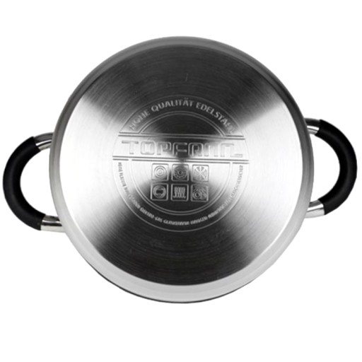 Garnek posiada pokrywkę wykonaną z hartowanego szkła, która umożliwia obserwowanie procesu gotowania. Przylega ona do krawędzi naczynia dzięki czemu tworzy się hermetyczna całość a potrawy szybciej się gotują. Pokrywa wyposażona została w półokrągły, stalowy uchwyt, dzięki któremu można swobodnie ją podnosić. Dodatkowo znajduje się w niej odpowietrznik, który zapobiega wykipieniu potrawy.