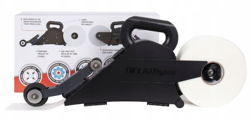 Delko Tools Hybrid to przyrząd ułatwiający szybkie łączenie płyt g/k. Narzędzie łączy w sobie podajnik taśmy i masy do szpachlowania. Spoiner Hybrid Delko Tools posiada aplikator do rogów wewnętrznych oraz możliwość obsługi przez osoby prawo lub leworęczne.
