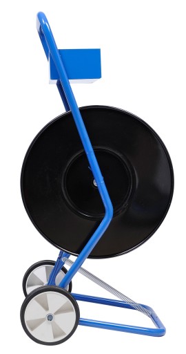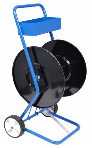Uniwersalny wózek do odwijania taśmy. Zaletą wózka są trwałe, wykonane z metalu i pełne talerze utrzymujące taśmę. Zachowują swój kształt nawet po długotrwałym użytkowaniu. Taśma jest stabilna, nie zawija się i nie plącze. Odwijak przeznaczony jest do pracy z taśmą o średnicy szpuli 200mm. Stalowa rama o grubości 25mm pozwala zachować stabilność całego urządzenia. Wózek posiada wytrzymałe koła gumowe o średnicy 125mm dzięki czemu z łatwością można go przemieszczać w terenie. Podręczna skrzynka na narzędzia umożliwia przechowywanie napinacza oraz zapinek.