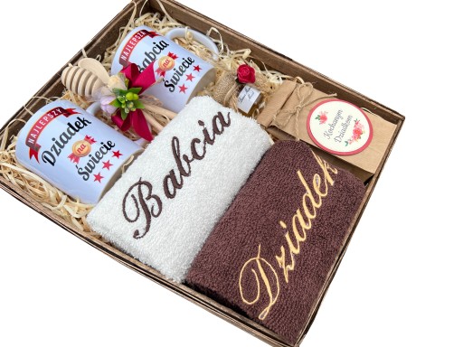 Wyjątkowy prezent na Dzień Babci i Dziadka - zestaw ręczników, kubków i dodatków. Elegancki, a jednocześnie praktyczny zestaw, który ucieszy babcię i dziadka.