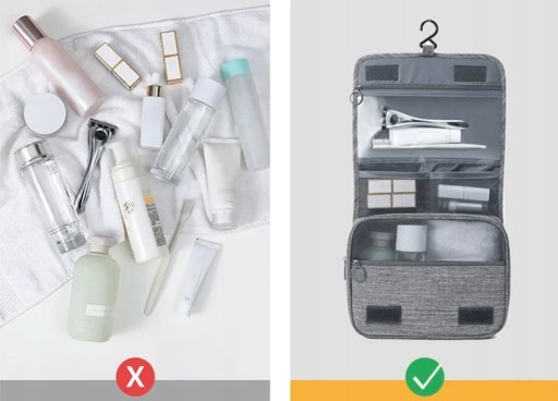 Rozkładana kosmetyczna idealnie sprawdzi się w podróży lu w domu. Organizer mieści najpotrzebniejsze przybory higieniczne, kosmetyki, drobne urządzenia itp. Wodoodporna tkanina, z której wykonano przybornik jest łatwa w utrzymaniu czystości. Kosmetyczna ma wygodny uchwyt do przenoszenia oraz posiada możliwość zawieszenia przy pomocy wbudowanego haczyka. Posiada wiele przegródek i kieszonek zamykanych na zamek.