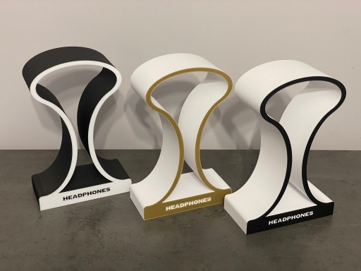Stojak na słuchawki wykonany z tworzywa sztucznego.