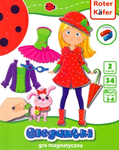 Magnetyczna gra Elegantki to zestaw trójwymiarowych magnesów pozwalających na fascynującą zabawę dla małych stylistów. Układaj magnetyczne puzzle na specjalnej tablicy lub na innej powierzchni. Wszystkie dziewczynki spędzają dużo czasu z ulubionymi lalkami, starają się wystroić je w najpiękniejsze ubrania i stworzyć coś swoimi rękoma. W tym zestawie znajdują się oryginalne i niezwykłe stylizacje dla lalki Alisy i jej pieska Polly na dowolne sytuacje w życiu. Z dużej ilości rzeczy trzeba dopasować komplety, które będą odpowiadać nowemu wyglądowi postaci i wybrać do nich odpowiednie akcesoria. W zestawie znajdują się: - postacie 2 szt., - magnesy elementy garderoby 34 szt., - szafa 1szt., - magazyn o modzie 1szt. Grubość magnetycznych pianek: 4mm