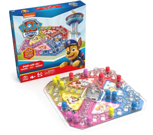 - Gra planszowa dla dzieci uwielbiających bajkę Psi Patrol. Przedstawia chińczyka z system pop up, zapewniając, że kostka do gry nigdzie się nie zgubi!