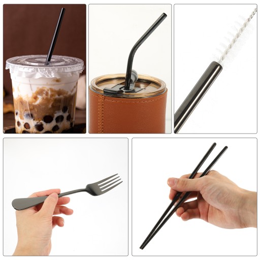✅Podróżny zestaw zastawy stołowej jest wyposażony w łyżkę, widelec i pałeczkę, które mogą zaspokoić Twoje różne potrzeby. Jest również wyposażony w słomkę i trwałą szczotkę do czyszczenia.