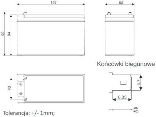 - Żywotność projektowana: 3 - 5 lat w 20°C wg Eurobat Grupa Standard Commercial