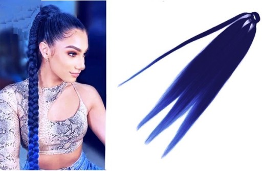 DOCZEPIANY WARKOCZ KUCYK NA GUMCE 80CM #1B\NIEBIESKI