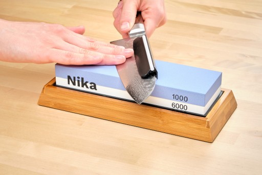 3. Zacznij ostrzenie noża od kamieni o grubszej granulacji, płynnie przechodząc do drobniejszych ostrzałek (400 → 1000; 3000 → 8000). Podczas ostrzenia trzymaj nóż pod kątem 10-20°.
