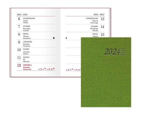 - Część informacyjna: skrócone kalendarium roku 2024 oraz 2025, skorowidz alfabetyczny, telefony kierunkowe, spis imienin, święta w latach 2024-2027, kalendarz stuletni