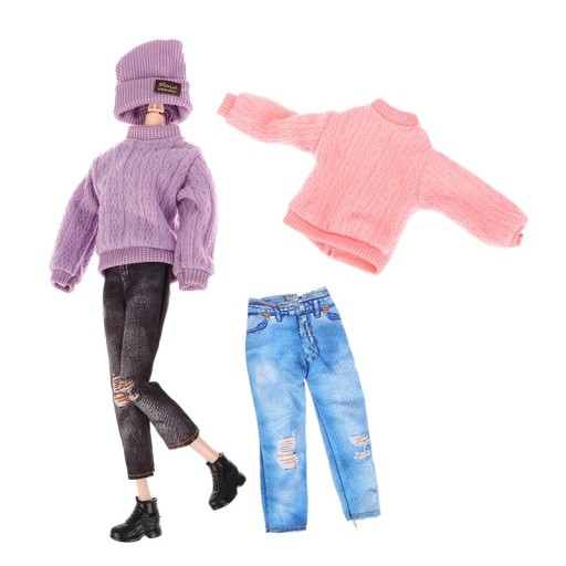 КОМПЛЕКТ ЖЕНСКОЙ ОДЕЖДЫ ИЗ СВИТЕРА, БРЮКИ, ШАПКИ И ТУФЛИ ДЛЯ КУКЛЫ БАРБИ