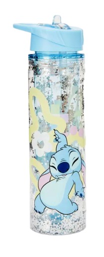 Бутылка для воды Disney с блестками и соломкой STITCH 550 мл