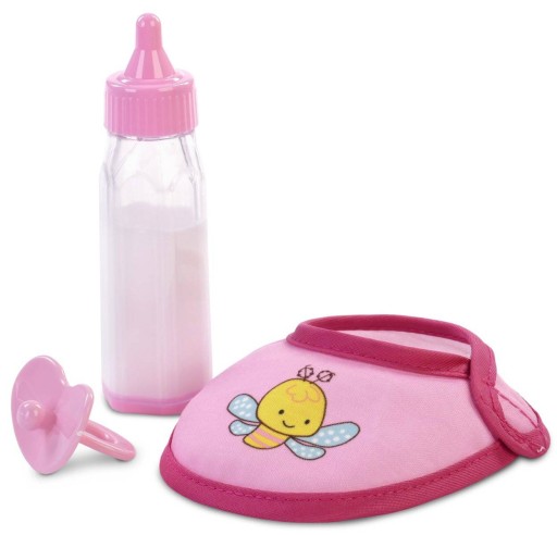 To ciekawy zestaw akcesoriów do zabawy lalką. Dziewczynki będą mogły teraz w pełni otoczyć opieką ukochaną lalę. Butelka z mlekiem naprawdę jest magiczna - gdy ją przechylisz, mleko zniknie, a kiedy uniesiesz ją ponownie - sama się napełni. To niesamowite! Zaś sliniak uchroni przed pobrudzeniem body czy innego ubranka podczas karmienia, natomiast smoczek zawsze będzie pod ręką by uspokoić i wyciszyć maleństwo do spania. Zestaw dla lalek zapewni Twojemu dziecku wspaniałą zabawę na długie godziny!