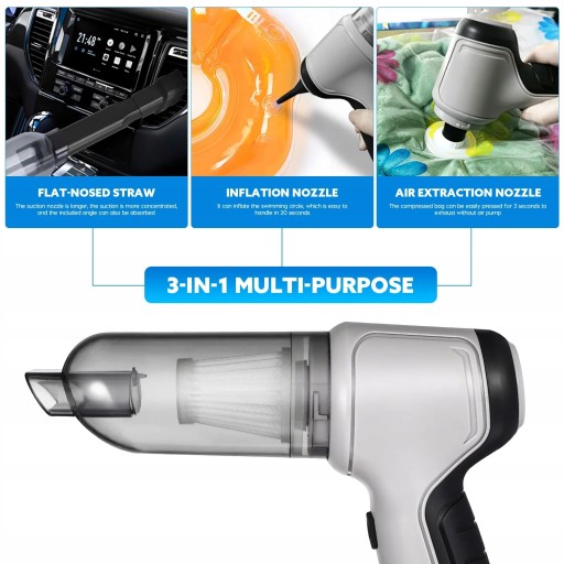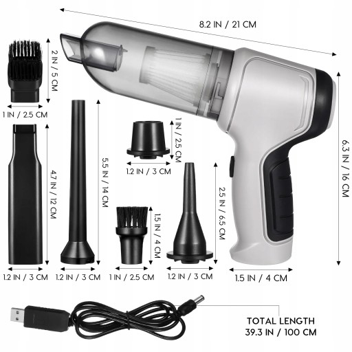 Ten produkt to wielofunkcyjny odkurzacz. Profesjonalne usuwanie kurzu i czyszczenie, wielokierunkowe, aby stworzyć komfortowe środowisko samochodowe. Bezprzewodowa przenośna konstrukcja spełnia potrzeby bezpłatnego czyszczenia w dowolnym miejscu i czasie. Duże ssanie może z łatwością wchłonąć wszelkiego rodzaju śmieci, zanieczyszczenia, włosy, łatwo wykonywać prace domowe i doświadczać nowego, czystego życia.