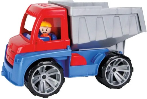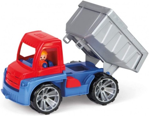 Kolorowa wywrotka o długości 27 cm, wykonana z elestycznego plastiku wysokiej jakości, spełniającego normy europejskie. Funkcjonalne autko, skrzynia ładunkowa i kabina kierowcy podnosi się.
