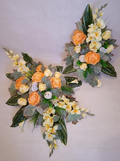 Zamawiasz ogólnie kolorystykę kompozycji, która może lekko się różnić od przedstawionych zdjęć (w razie jakiś braków kwiatków zastępujemy bardzo podobnymi).