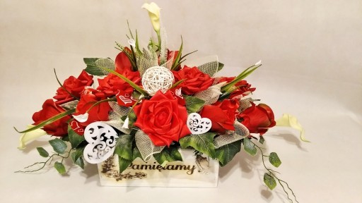 Kompozycje robione są ręcznie stąd może być rozbieżność do ok. 5cm. Ustawienia monitora może wpłynąć na nasycenie koloru.