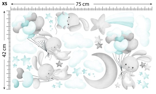 ЗАЙЧИКИ ШАРЫ Наклейки на стену 75х42 см SDB13XS