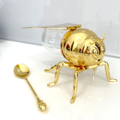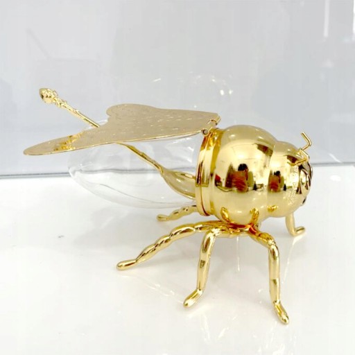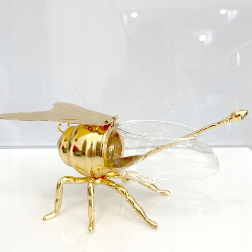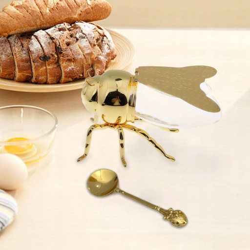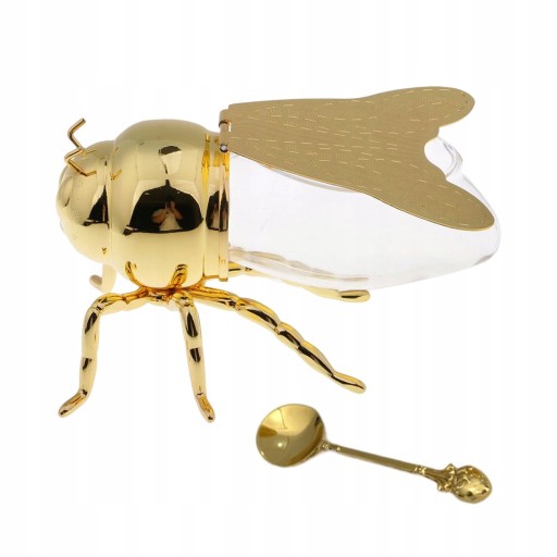Luksusowy miodnik pszczeli: Wykonany w formie pszczoły miodnej, wykwintny, ukazujący szczegóły statuetki W zestawie łyżka miodu do serwowania