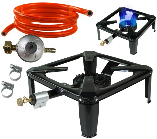 ⭐ Taboret Palnik Kuchenka Turystyczna Gazowa 40 x 40 cm Zestaw Reduktor Wąż Opaski 8kW ⭐