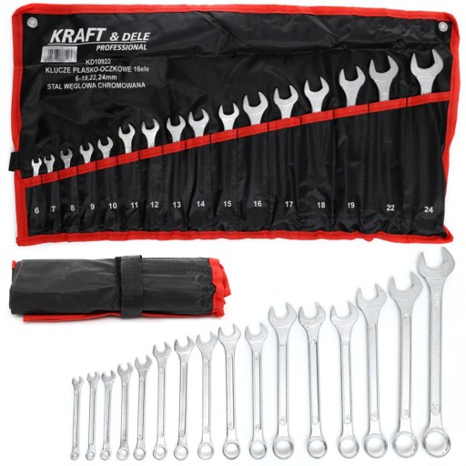 Kraft&Dele 16 шт. КОМБИНИРОВАННЫЕ КЛЮЧИ 6-24 мм ОТКРЫТЫЕ КЛЮЧИ