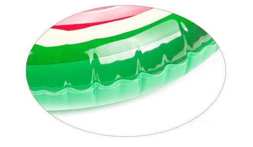 Kolorowe koło dmuchane w kształcie arbuza, wykonane z wysokiej jakości plastiku PCV, gwarantującego wytrzymałość.