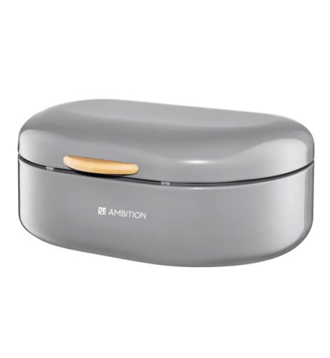 - Korpus chlebaka wykonany ze stali nierdzewnej z rączką z drewna bambusowego