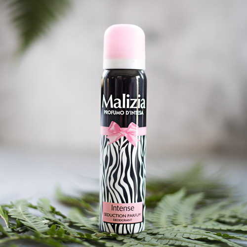 1x Malizia Dezodorant damski Intense 100 ml dkryj esencję uwodzenia. Mieszanka jaśminu, tuberozy, bursztynu i sandałowca, która tworzy ciepłe i pełne pasji nuty. Niewątpliwie kobieca i intrygująca.