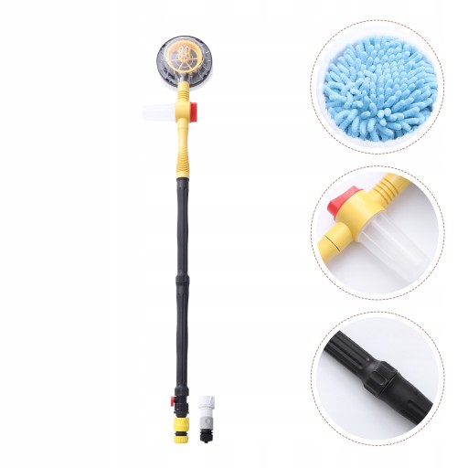 Cechy Kolor żółty. Materiał: Chenille i PP. Rozmiar: 120 x 19 x 10 cm (dł. x szer. x wys.). Nowa technologia wielofunkcyjna szczotka do czyszczenia samochodu. Nie ma potrzeby podłączania automatycznej myjni z obrotową szczotką, po prostu automatycznie spryskuje i czyści. Spłukiwanie pod wysokim ciśnieniem, środek czyszczący, dzięki któremu bez problemu umyjesz samochód. Automatyczna praca, pomaga zaoszczędzić czas.